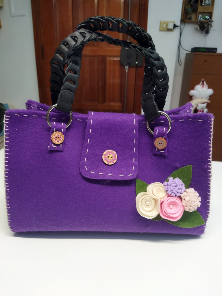 Cari a-mici, sono felice di presentarvi il primo esemplare della linea di produzione delle borse in feltro di “fatto da Brikka e Sophie” !!!!!!