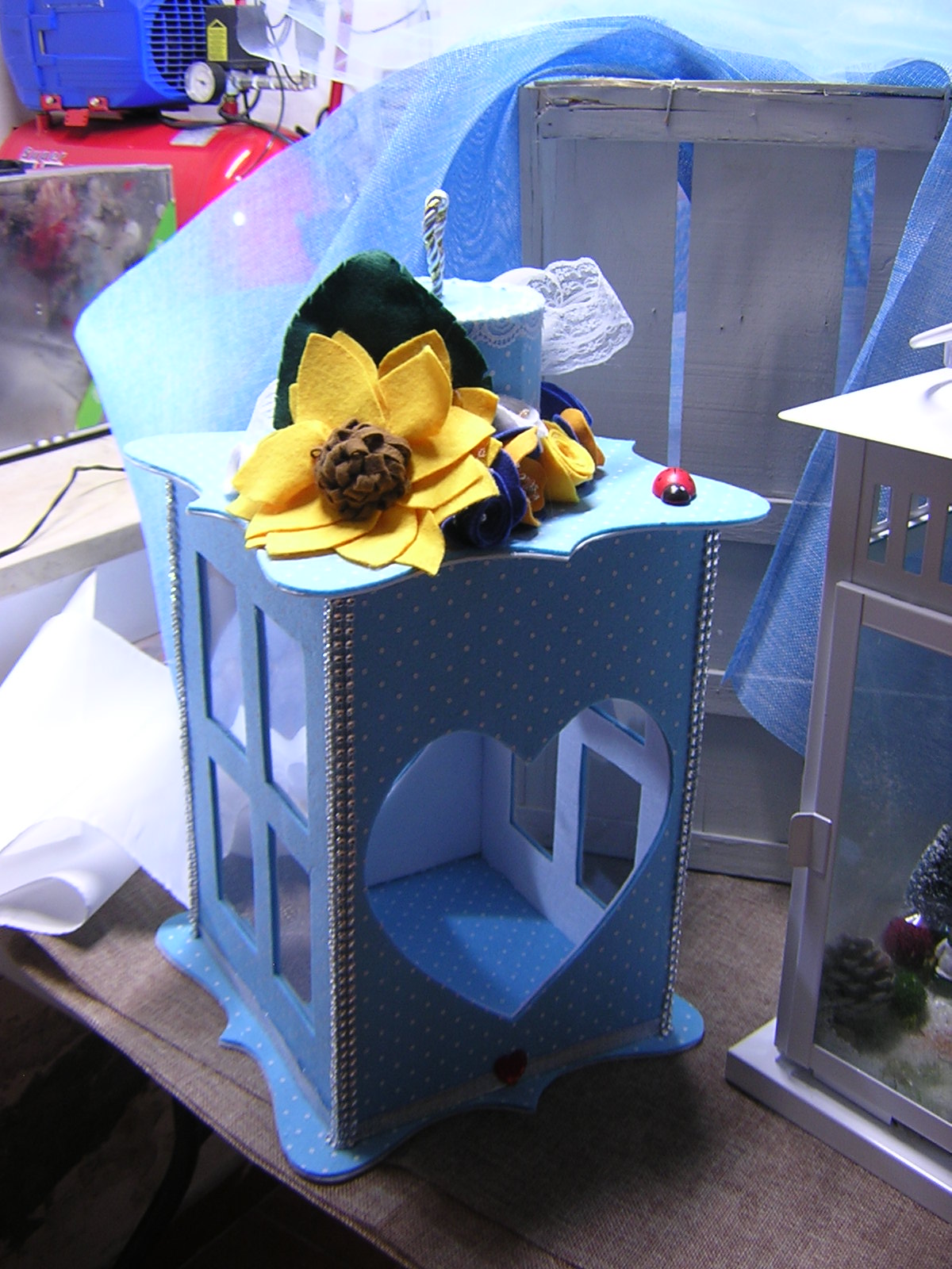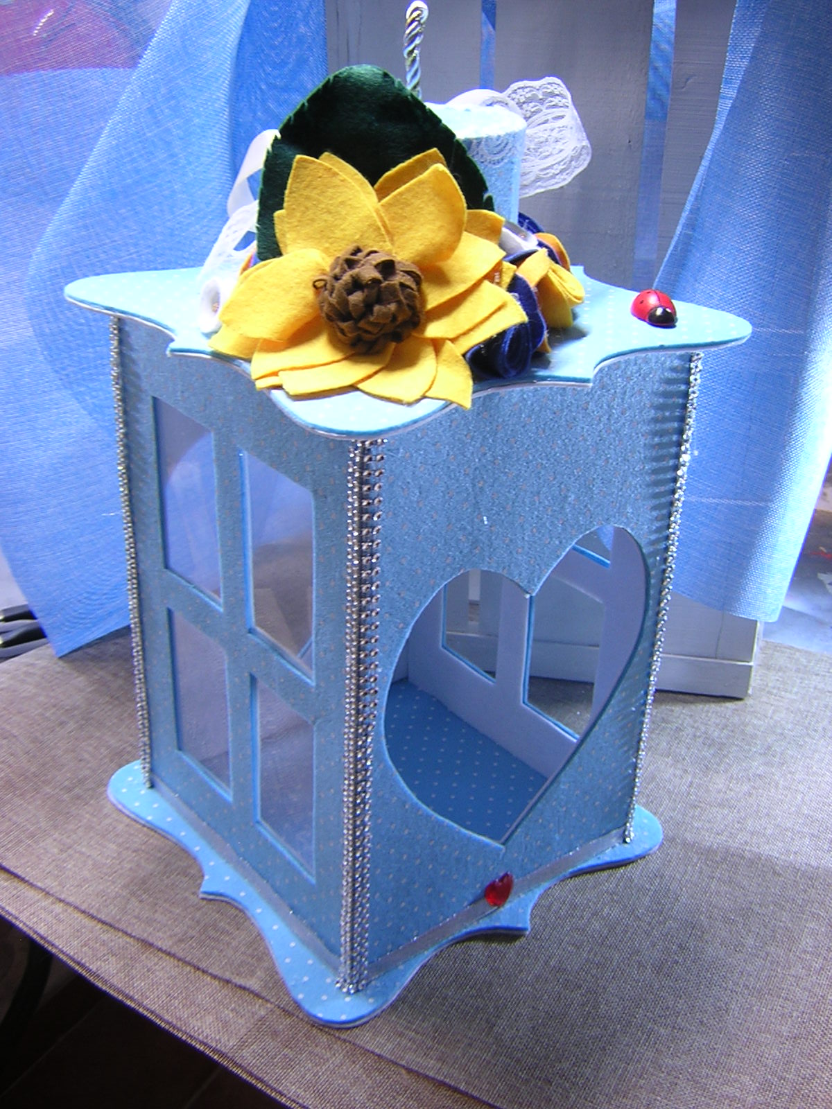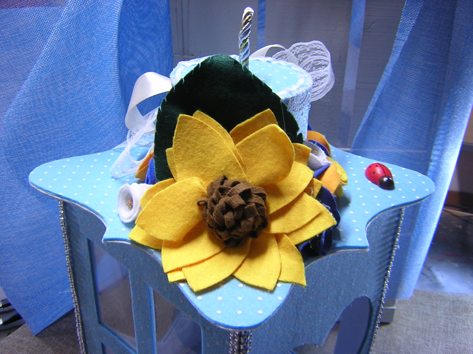 Salve a-mici ! Eccomi di nuovo al mio posto di direttore marketing per presentarvi la big Lanterna che vi avevo anticipato la volta scorsa. Anche se la Sophie è petulante e bacchettona e mi fa le ramanzine perchè rincaso tardi la sera e vado al mare con Puntino, sa il fatto suo quando si parla di lanterne….. che ne dite non è un amore ??!!! Sapete è alta 40 cm ed è realizzata in feltro 2 mm. Un vero capolavoro… come me del resto !!!!!!