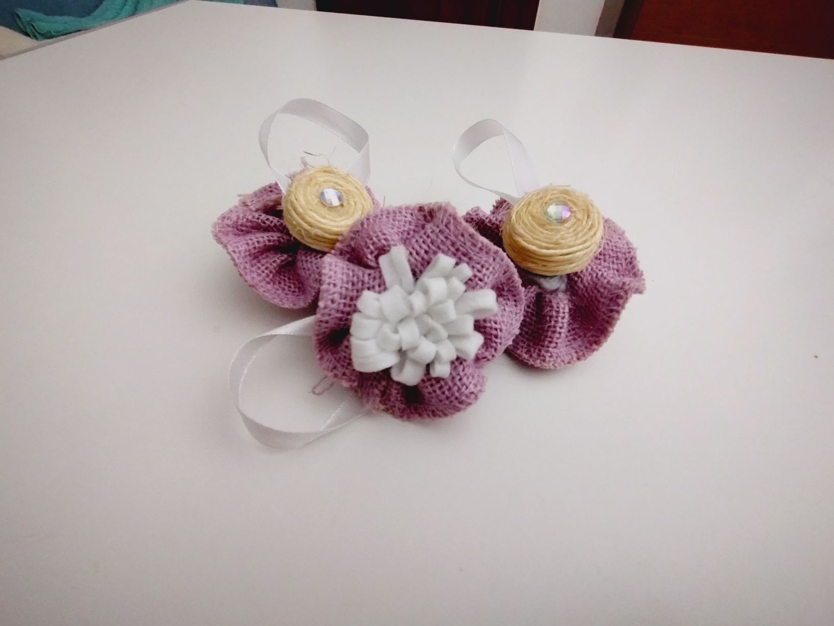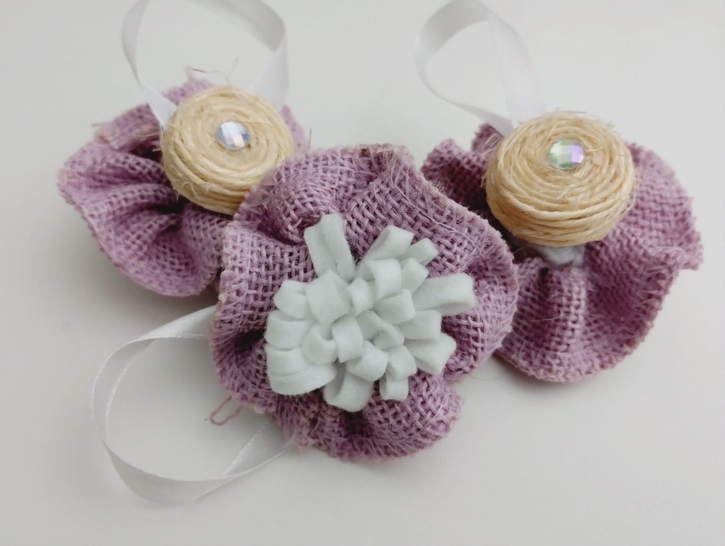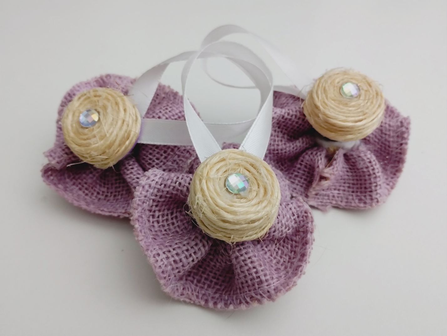 Ha realizzato queste bellissime calamite con iuta e pannolenci : da una parte c’è un romantico fiore in stile shabby chic, per il retro invece ha utilizzato dei tappi in plastica rivestiti con la yuta.