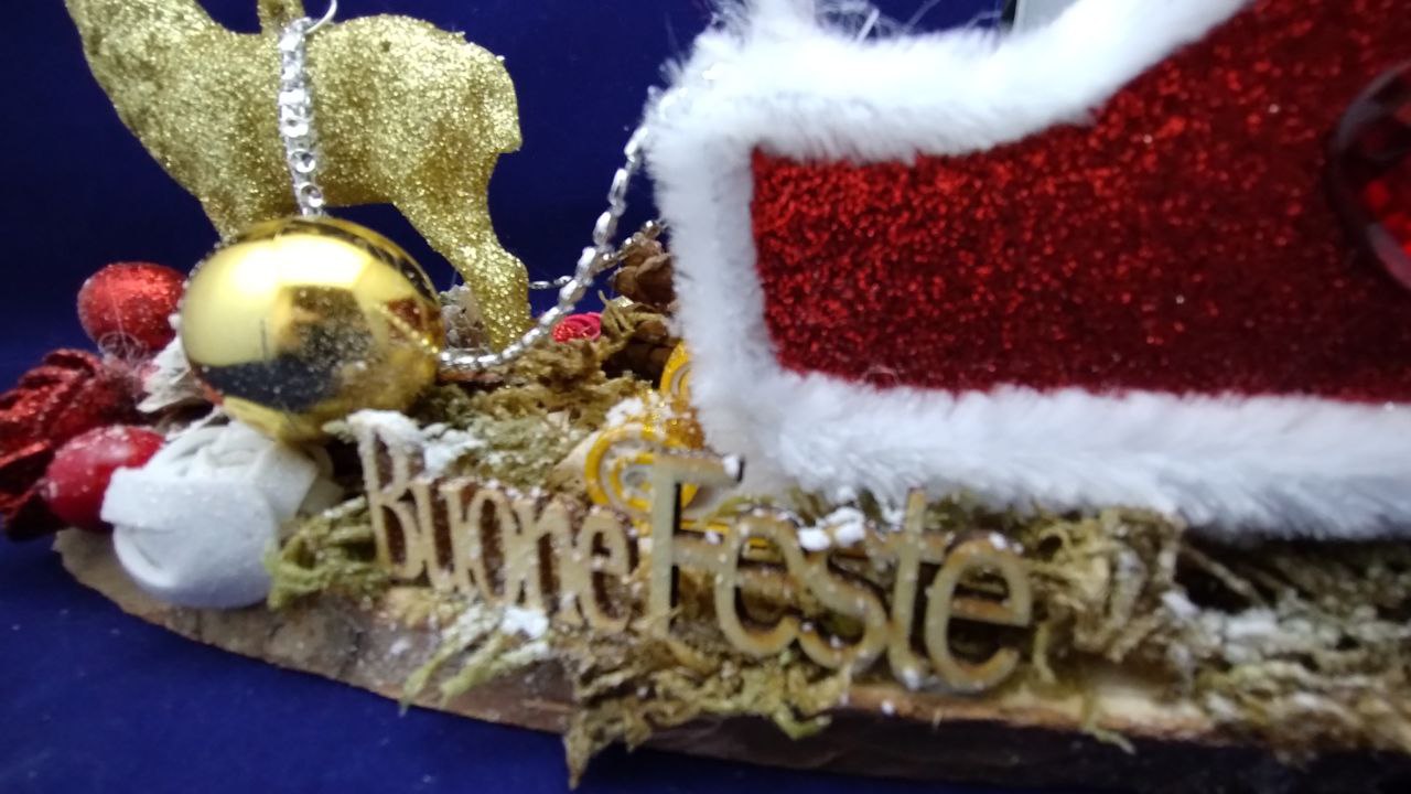 Salve a-mici !!!! La Sophie è uscita dal suo sgabuzzino – laboratorio e ci ha fatto vedere questa meraviglia : la slitta di Babbo Natale !!!!!Si tratta di un piccolo capolavoro che può essere usato per regalare dolcetti a Natale, oppure come centrotavola o semplicemente come decorazione. Io penso che non passerà inosservato al mercatino di Natale a cui ci accingiamo a partecipare.