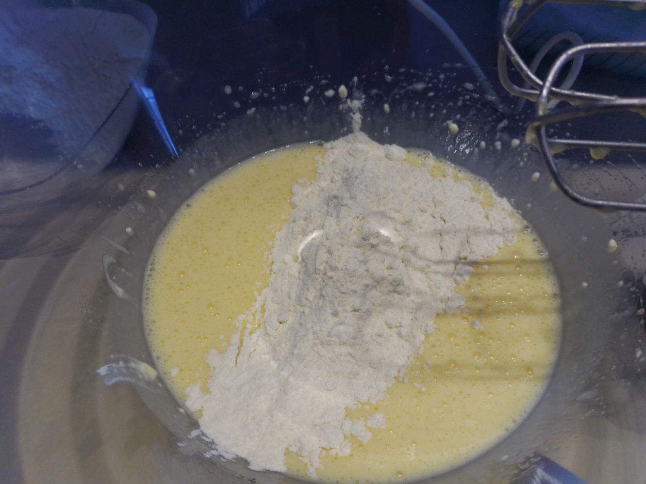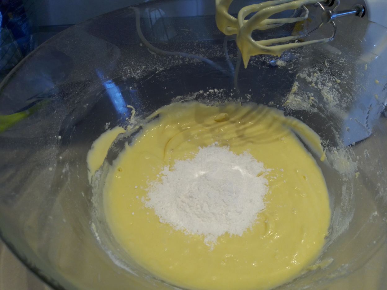 Aggiungiamo la farina, in due volte e poi il lievito e amalgamando sempre con l’aiuto delle fruste elettriche
