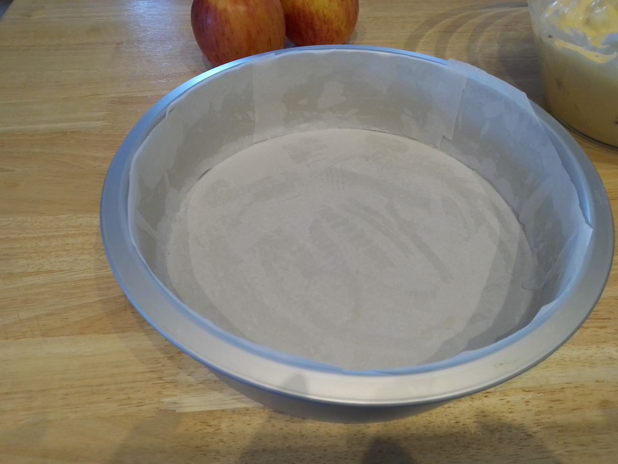 Versiamo l’impasto in una teglia foderata con carta da forno (per tenere ferma la carta ungete un pò lo stampo con il burro : funzionerà come un collante e la carta da forno non si sposterà)