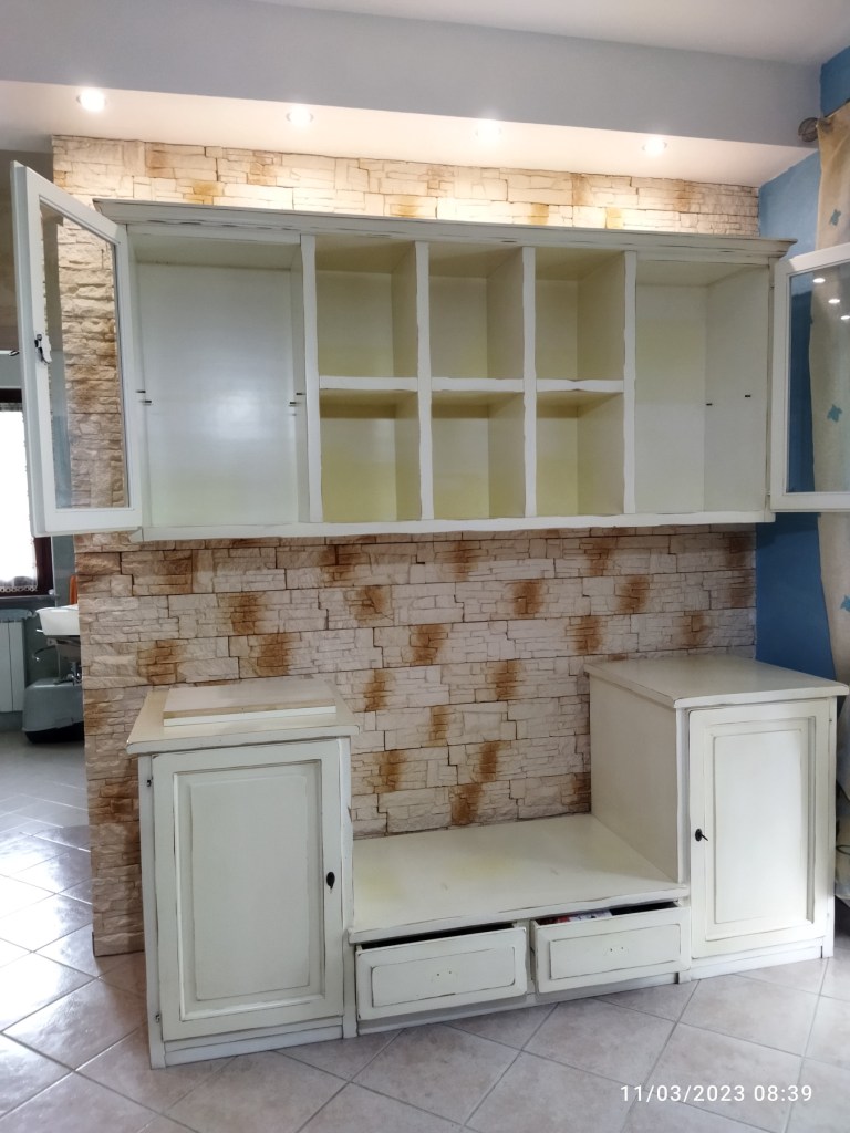 Salve a-mici !!! E’ da diverso tempo che stiamo pensando di sbarazzarci di un mobile che non è mai stato un granchè. La nostra umana, che lo chiama “catorcione”, si era già attivata per defenestrarlo, ma la Sophie si è “intromessa”. Così si è rimboccata le maniche e ha deciso di recuperare il mobile. Ha ordinato online tutto l’occorrente e si è messa all’opera….. noi siamo un pò scettici. Non che non siamo consapevoli delle doti artistiche della Sophie, ma è davvero un’impresa disperata !!!! Giudicate un pò voi e dietci se si può recuperare una simile mostruosità ?