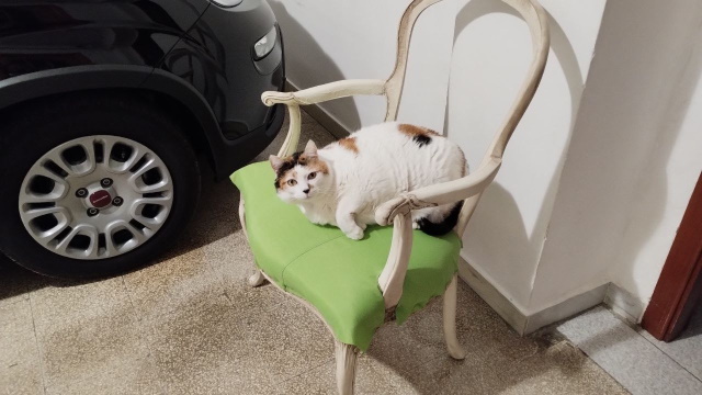 Salve a-mici !!! La Sophie sta lavorando al restauro della poltroncina presa da Puntino. E io come controllo qualità non posso fare a meno di fare i test necessari per verificare se il restauro procede correttamente.