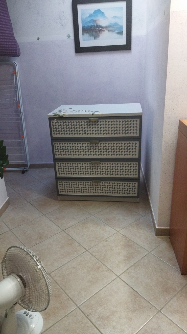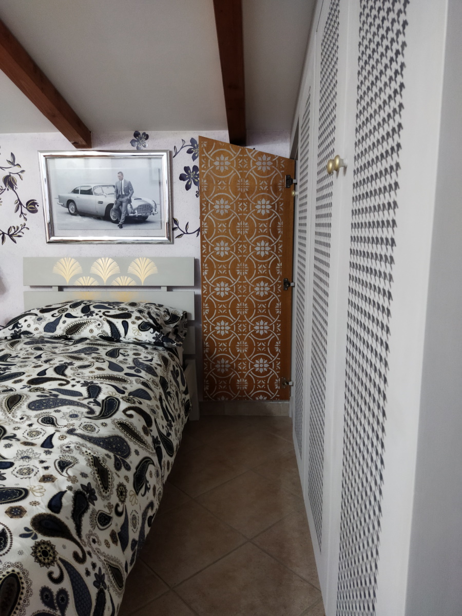 Poi dato che mi era rimasto del grigio pietra, ho fatto uno stencil direttamente sul legno nella parte interna delle ante dell’armadio