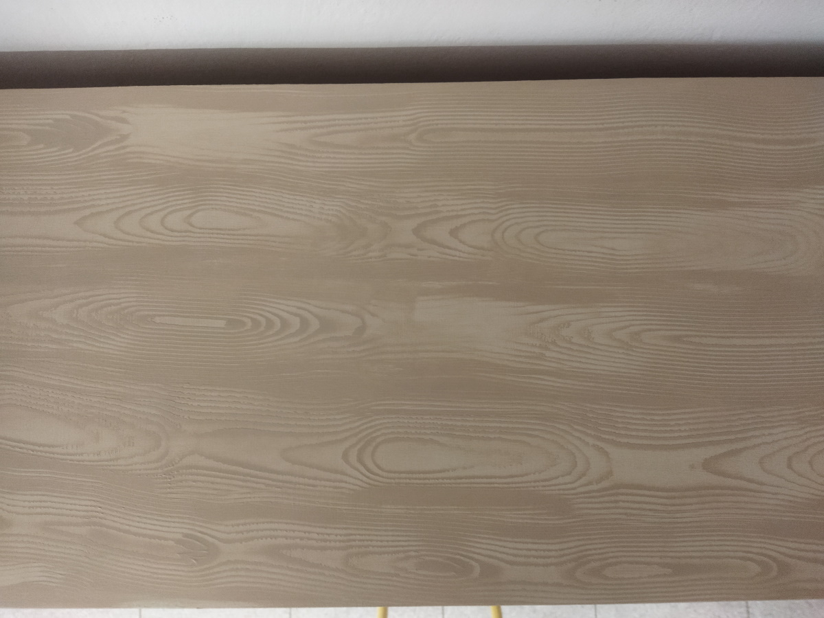 Per prima cosa, ha sistemato i fianchi e la parte superiore del mobile, usando una nuova tecnica con uno strumento specifico che si chiama venalegno, ricreando così le venature del legno in 3D.