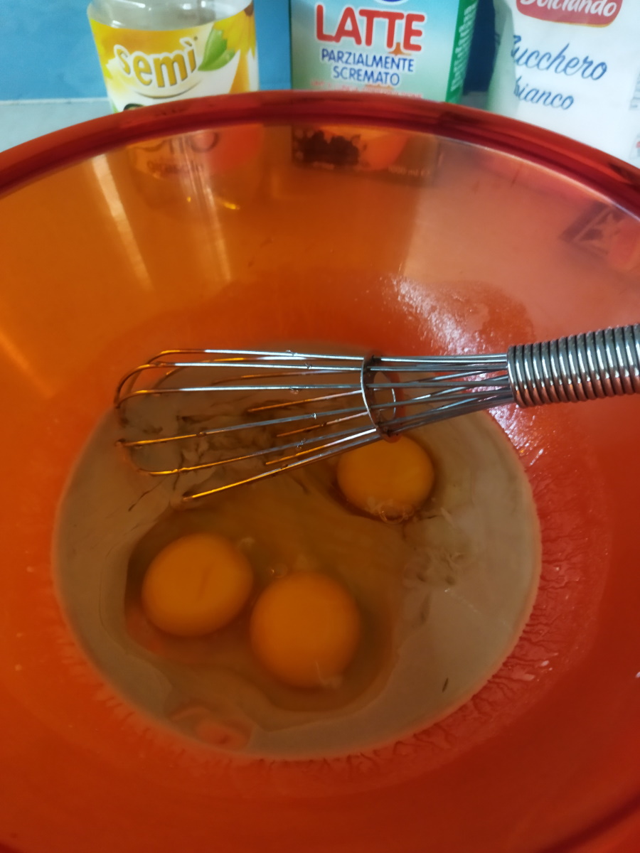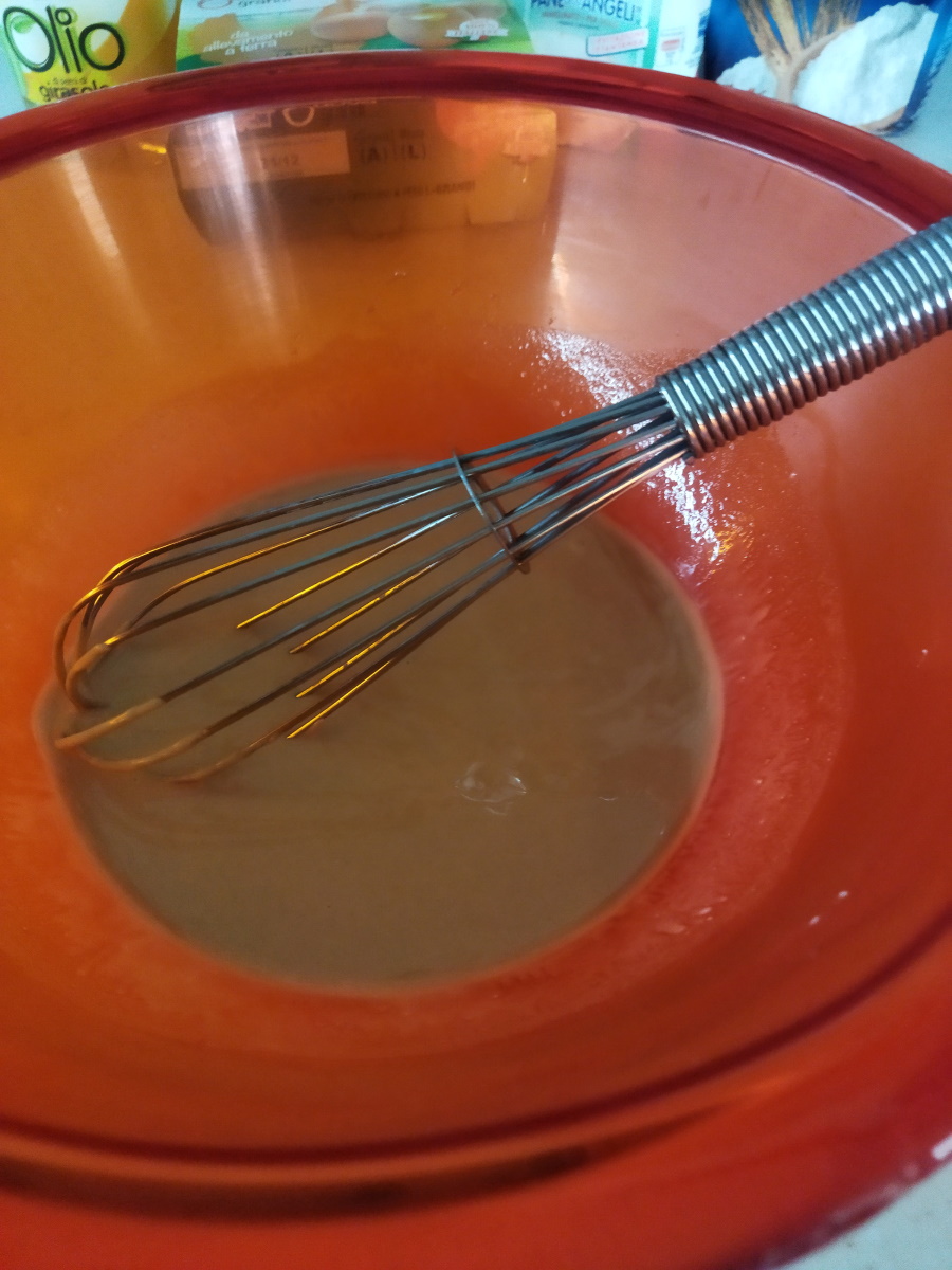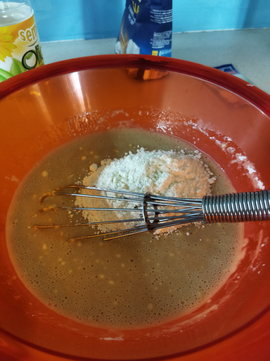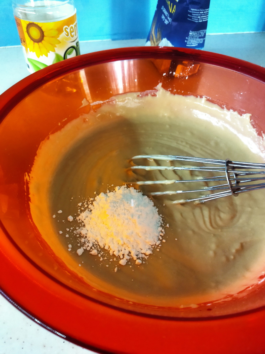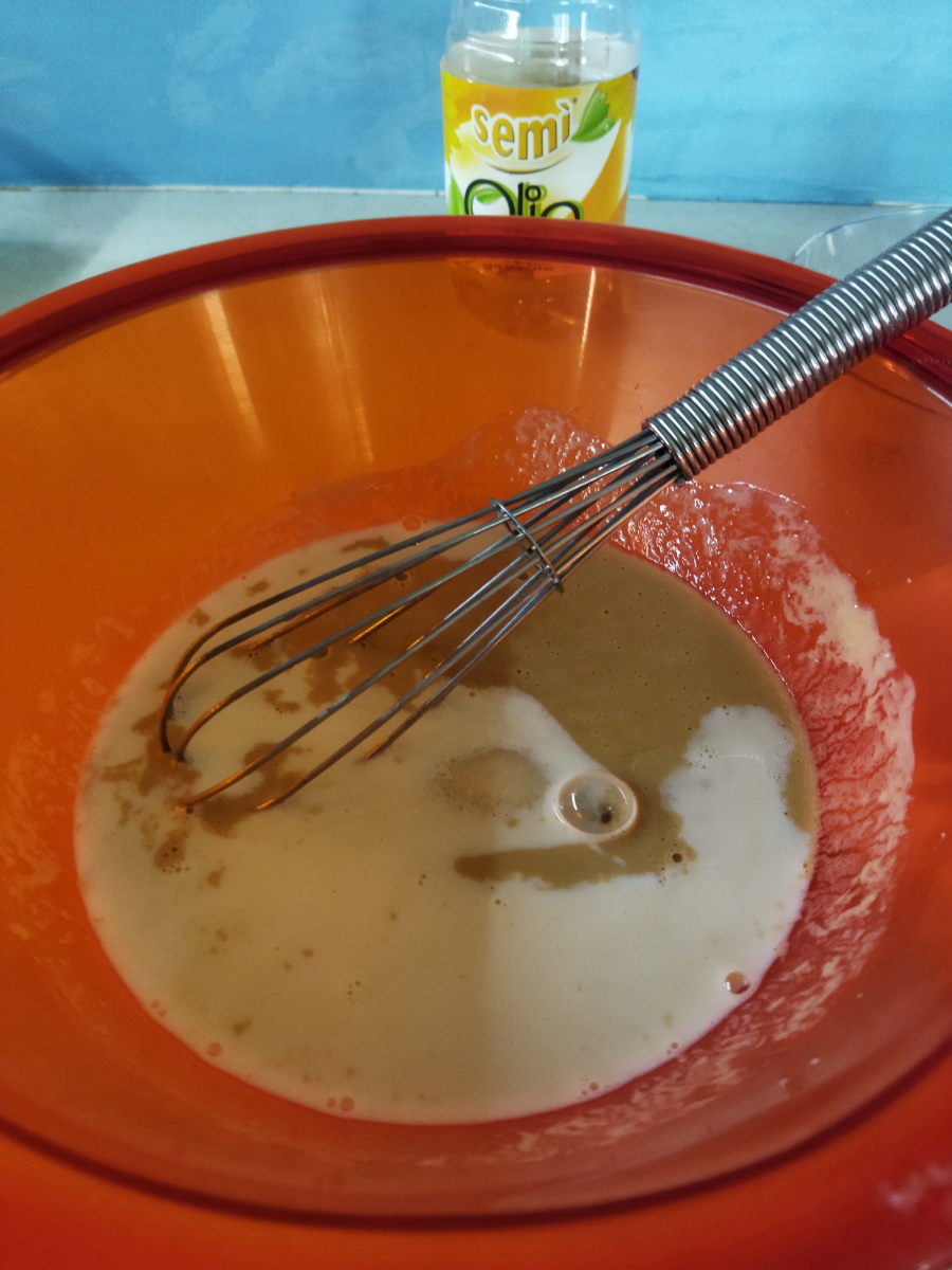 Aggiungete quindi l’olio, il latte e la farina, quest’ultima poco per volta, perchè il composto deve essere fluido