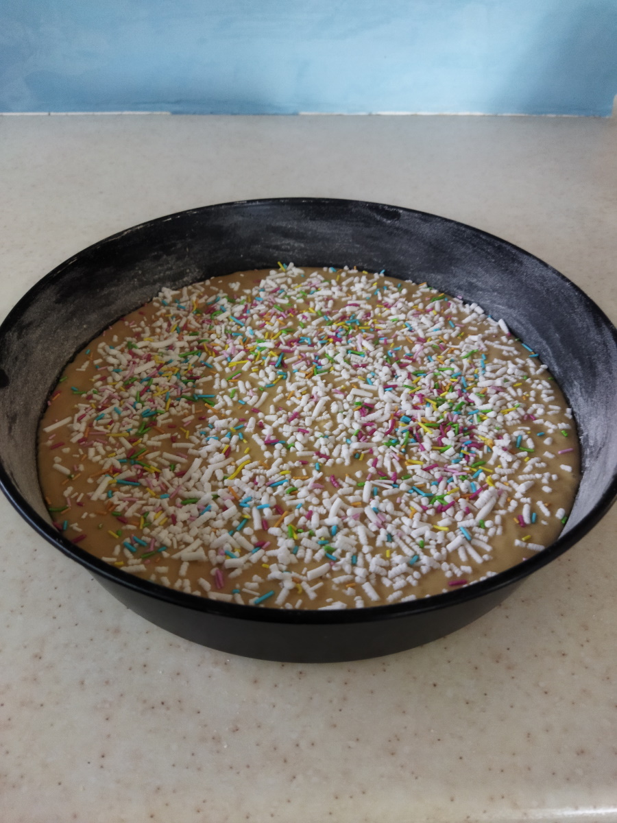 Aggiungete il lievito per dolci e mettete il composto in una tortiera oliata e infarinata e se volete aggiungete la decorazione. Cuocete in forno già caldo a 180° per circa 30 minuti, ma controllate la torta durante la cottura