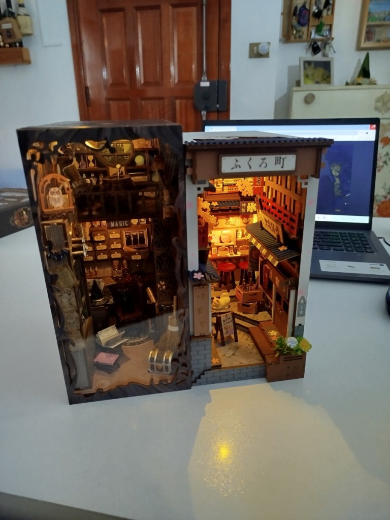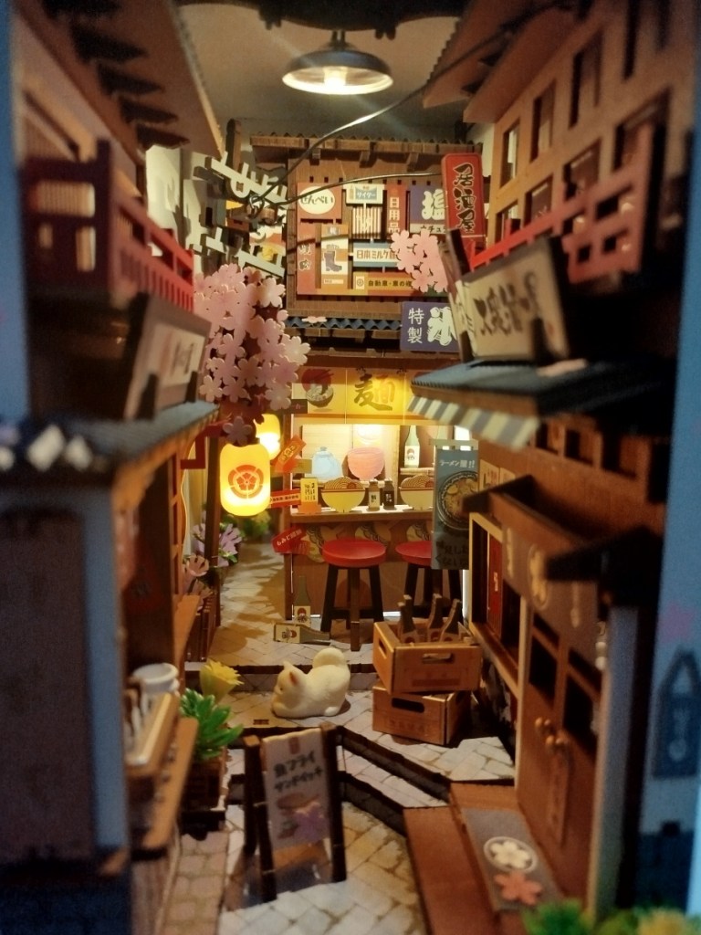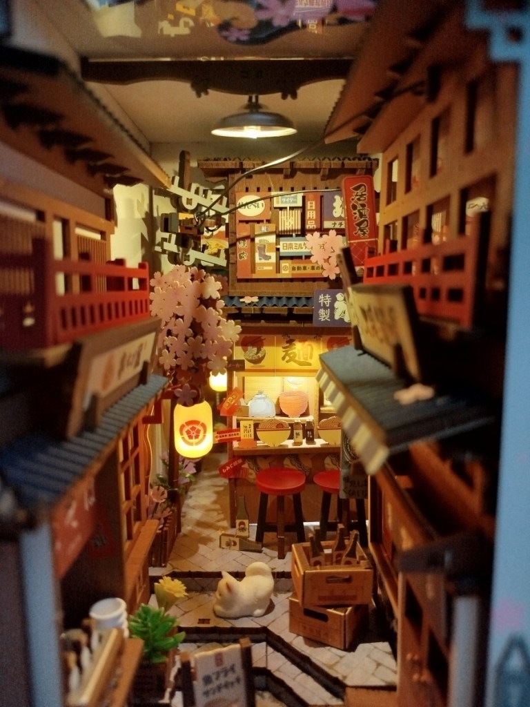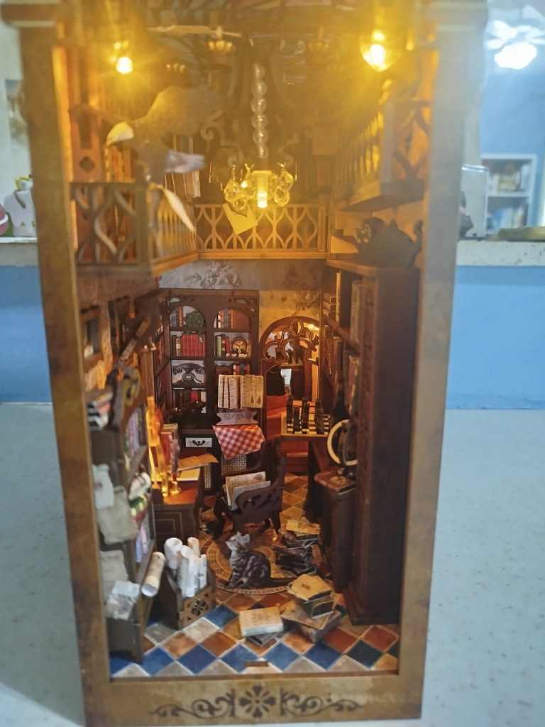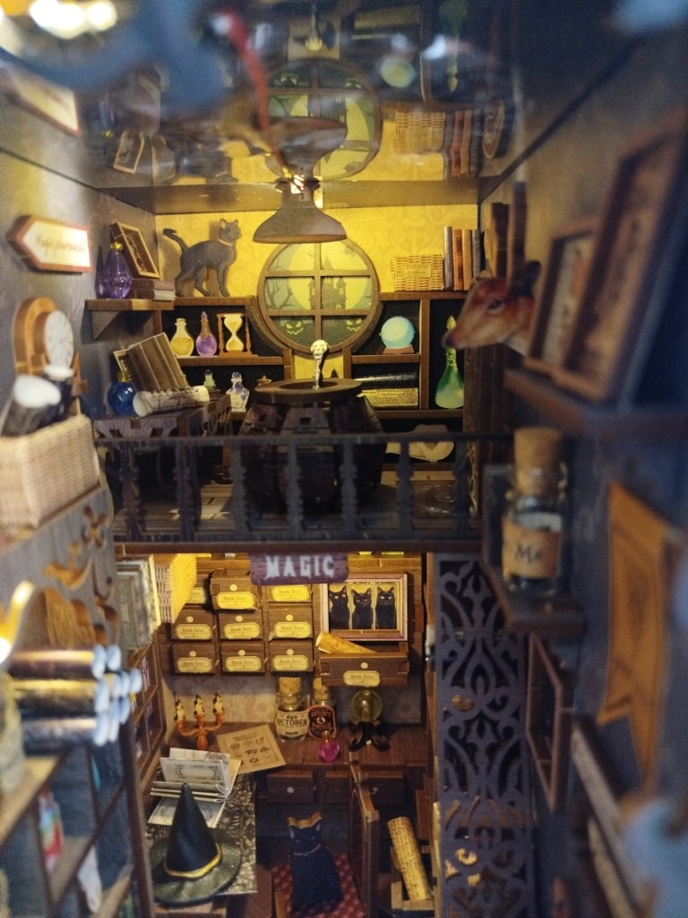Sono dei diorami che normalmente sono inseriti nelle libreria. Replicano in miniature scorci di città, antiche librerie, favole… sono davvero graziosi e costruirli è molto rilassante… molto… così Milù si rilassa ancora di più e quando non costruisce i book nook, dorme !