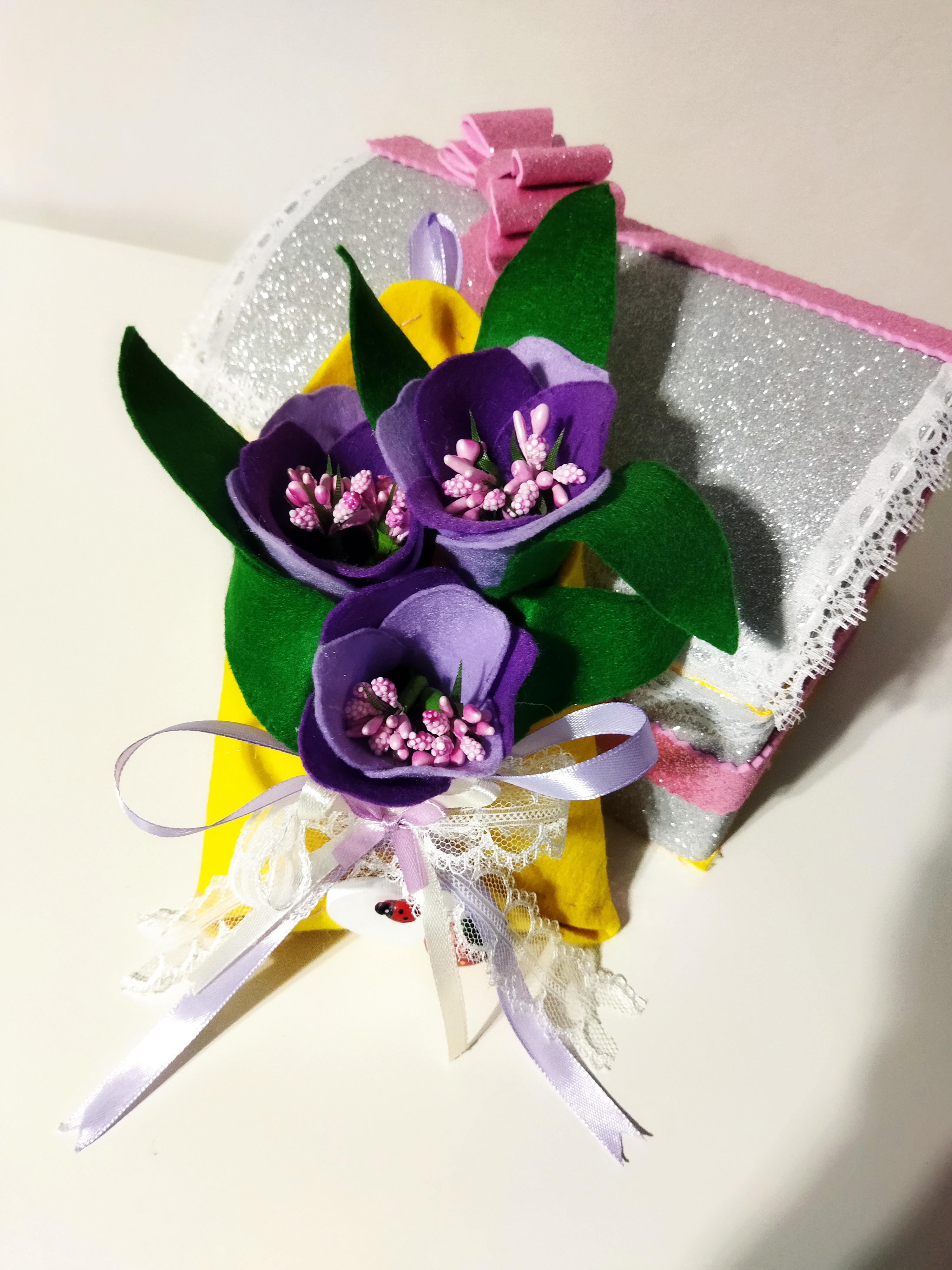 Fantastiche poi le scatole portagioie della linea “segreti felini“. Realizzate in feltro, gomma eva e con decorazioni in carta crespa, lasciano senza parole tutte le micie che decidono di averne una per se o da regalare alle loro amiche di code.