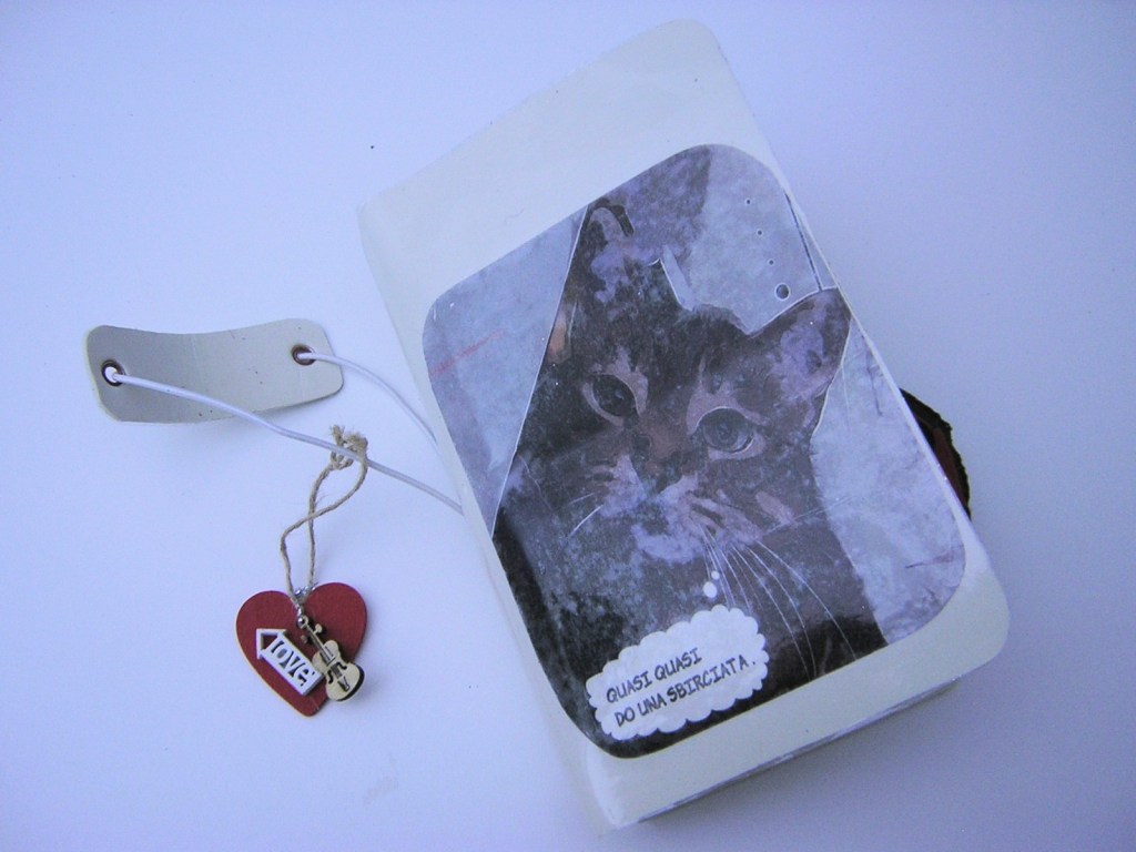 Come abbiamo più volte detto, la fantasia della nostra Sophie non conosce limiti ! Si cimenta sempre nella creazione di nuovi prodotti, supervisionando la loro realizzazione, fino a che la perfezione non viene raggiunta, in questo aiutata da tutto il cat group, con particolare supporto da parte di Isotta, giovane ma attenta responsabile di produzione. Nascono così le Brikkadori, versione felina delle midori, in omaggio al direttore vendite e marketing Brikka, per esaltare il suo spirito di eterna girovaga. Abbiamo poi l’orologio Milù, in omaggio alla nostra mandrugona Milù, sempre interessata all’orario della pappa, o il trasferimento immagine su Gomma Eva. Non dimentichiamo neanche le finestre decorative realizzate con materiale di scarto, utilizzabili come portafotografie o semplicemente come decorazione per le pareti, i fiori in carta crespa, le cornici portafoto, calamite commemorative, riciclo creativo, e tanto, tanto altro ancora. Perchè non c’è alcun limite alla nostra creatività !!