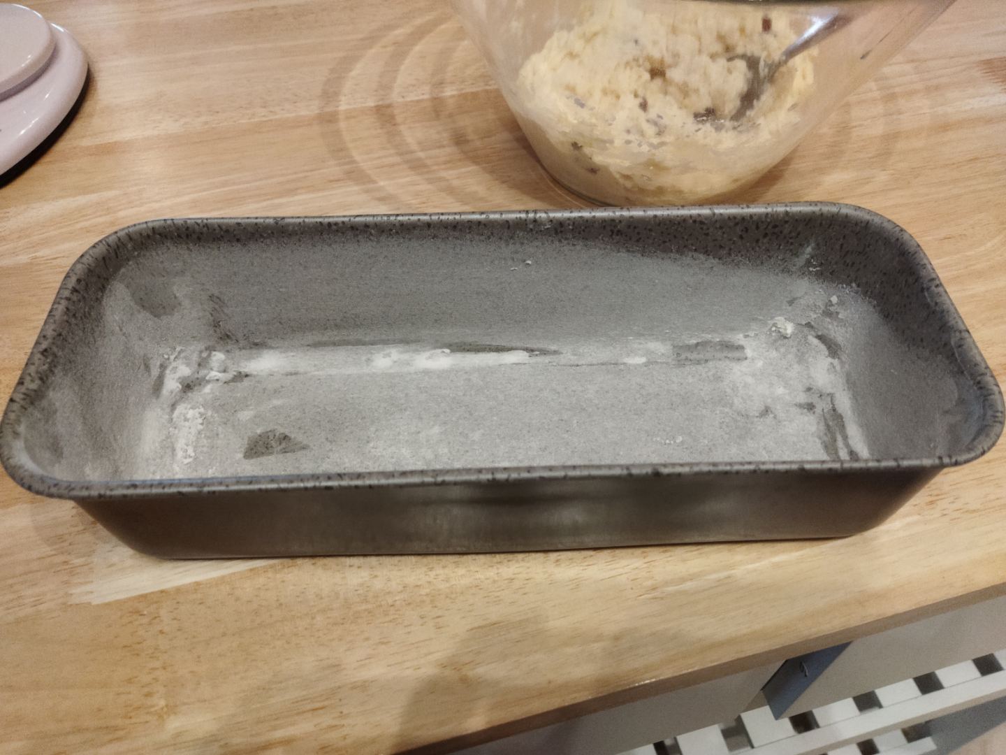 Imburriamo ed infariniamo uno stampo a ciambella e versiamo il composto livellando bene
