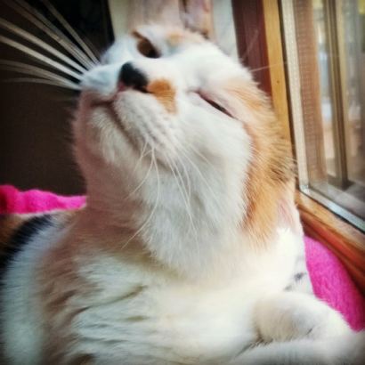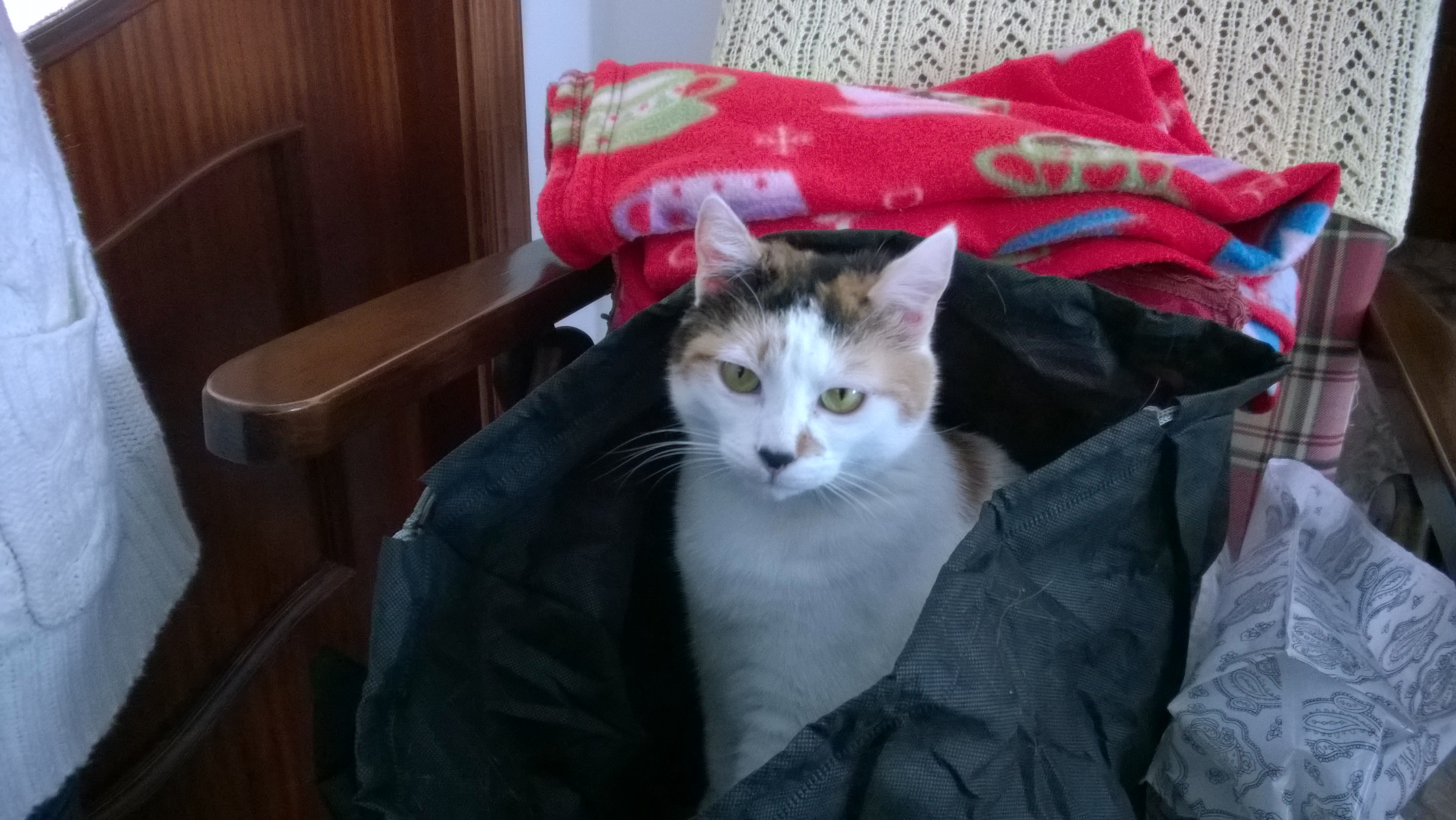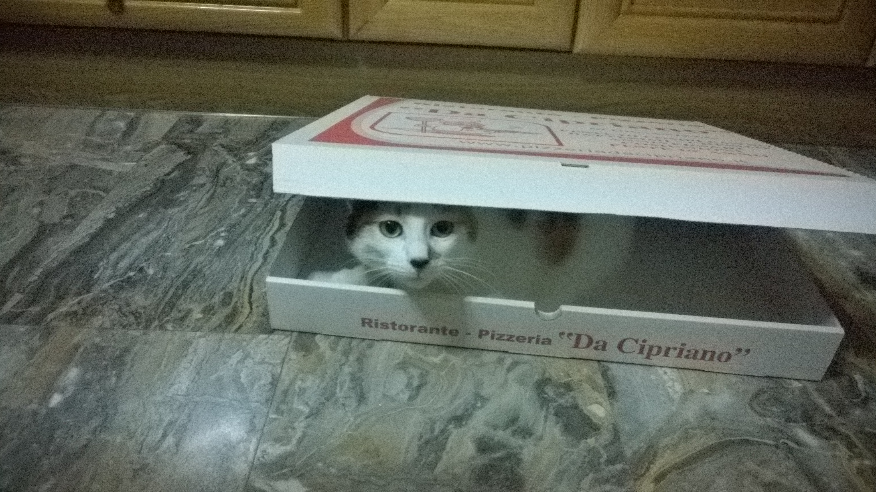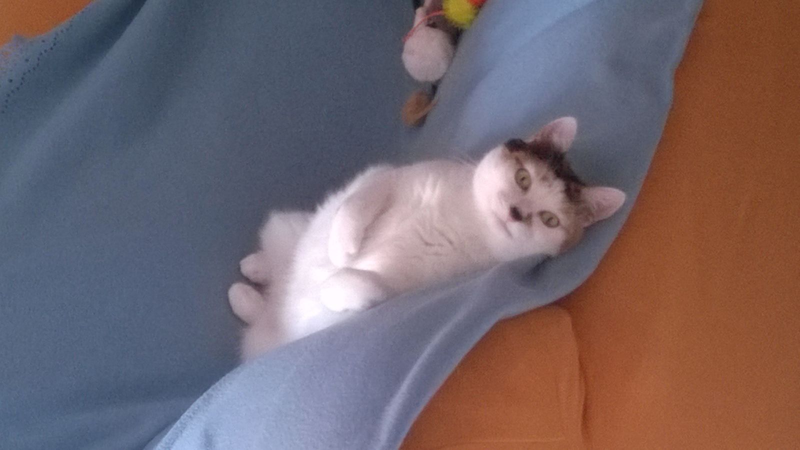 Arrivata nel quartiere, sembra all’interno del motore di una macchina, sebbene mi fossi accorta subito, dal mio punto di osservazione accanto alla finestra, che di un gatto aveva solo la forma, mi ha intenerito così piccola e smarrita. Ho chiesto quindi alla mia umana di darle da mangiare e, una crocchetta tira l’altra, me la sono ritrovata in casa in un gattosecondo ! Ho provato a convivere con lei, ma non c’è verso di farne una vera gatta, così adesso si può dire che viviamo separate in casa: io ai piani alti e lei al piano terra. Divide la stanza con Brikka, che ha molta più tolleranza di me (sarà la giovinezza). Ha una passione sfrenata, oltre che per le crocchette, anche per il fai da te. La vedrete spesso aggirarsi sul tavolo da lavoro, a mangiucchiare la carta crespa, o a giocare con i fili di colla.
