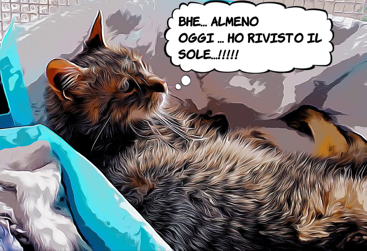 Salve a-mici !!! Sono ancora malata, anche perchè non abbiamo ancora trovato un riparagatti che ci ha capito qualcosa. I miei umani stanno cercando di aiutarmi come possono, perchè esattamente come me, hanno perso la fiducia nei riparagatti e nelle loro portentose punturone, che mi fanno stare bene per due giorni e poi finito l’effetto di un intruglio micidiale in dosi per cavalli, sto peggio di prima.