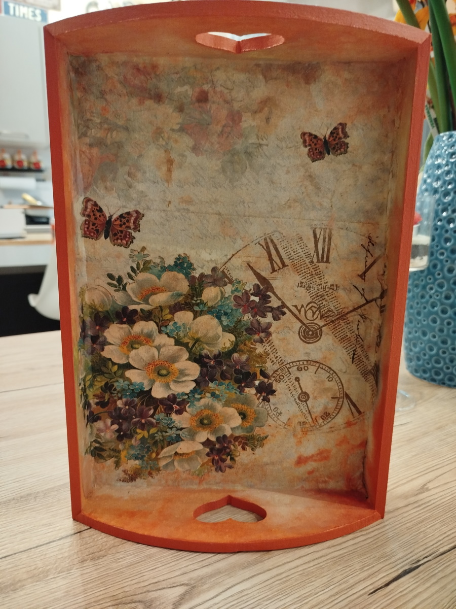 La Sophie è passata al decoupage con la sua chalk paint : dato che mobili da rinnovare ormai non ce ne sono quasi più, la gatta drogata di restyling è passata al decoupage. Devo dire che l’idea è mia : quando ancora le mie gambe funzionavano, sono passata davanti alla vetrina di un negozio che vendeva scatole, cornici, vassoi ed altri oggetti, in legno grezzo.