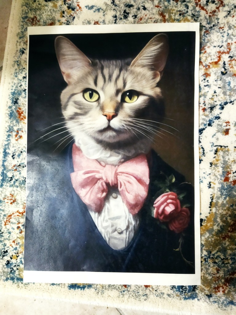E’ per questo che ho chiesto alla Sophie di fare una porta segreta, ed è per questo che ho chiesto sempre alla Sophie di mettere a posto un vecchio mobiletto : la porta nasconderà il mio ufficio da biscazziera e il mobiletto nasconderà la cassaforte. E oggi mentre mettevo a posto il mio ufficio segreto, ho trovato dei dipinti … dipinti di gatti “antichi”…. chissà chi sono, … ad ogni modo ho chiesto alla Sophie di fargli delle cornici perchè voglio addobbare le pareti del mio ristorante di copertura con ritratti di gatti, meglio se nobili.