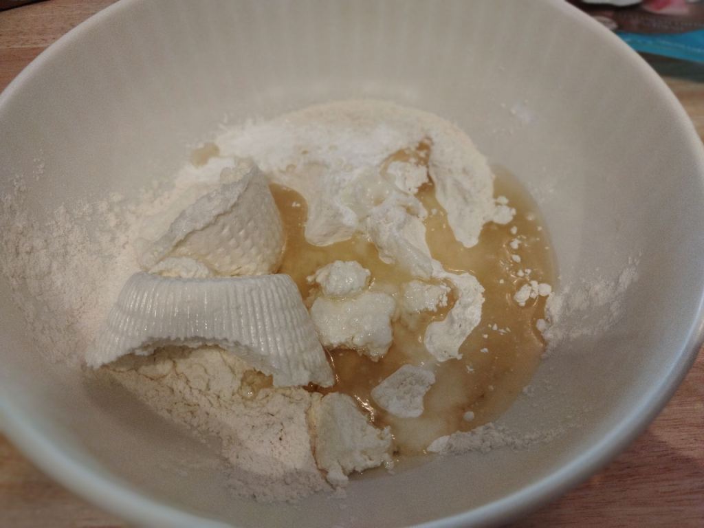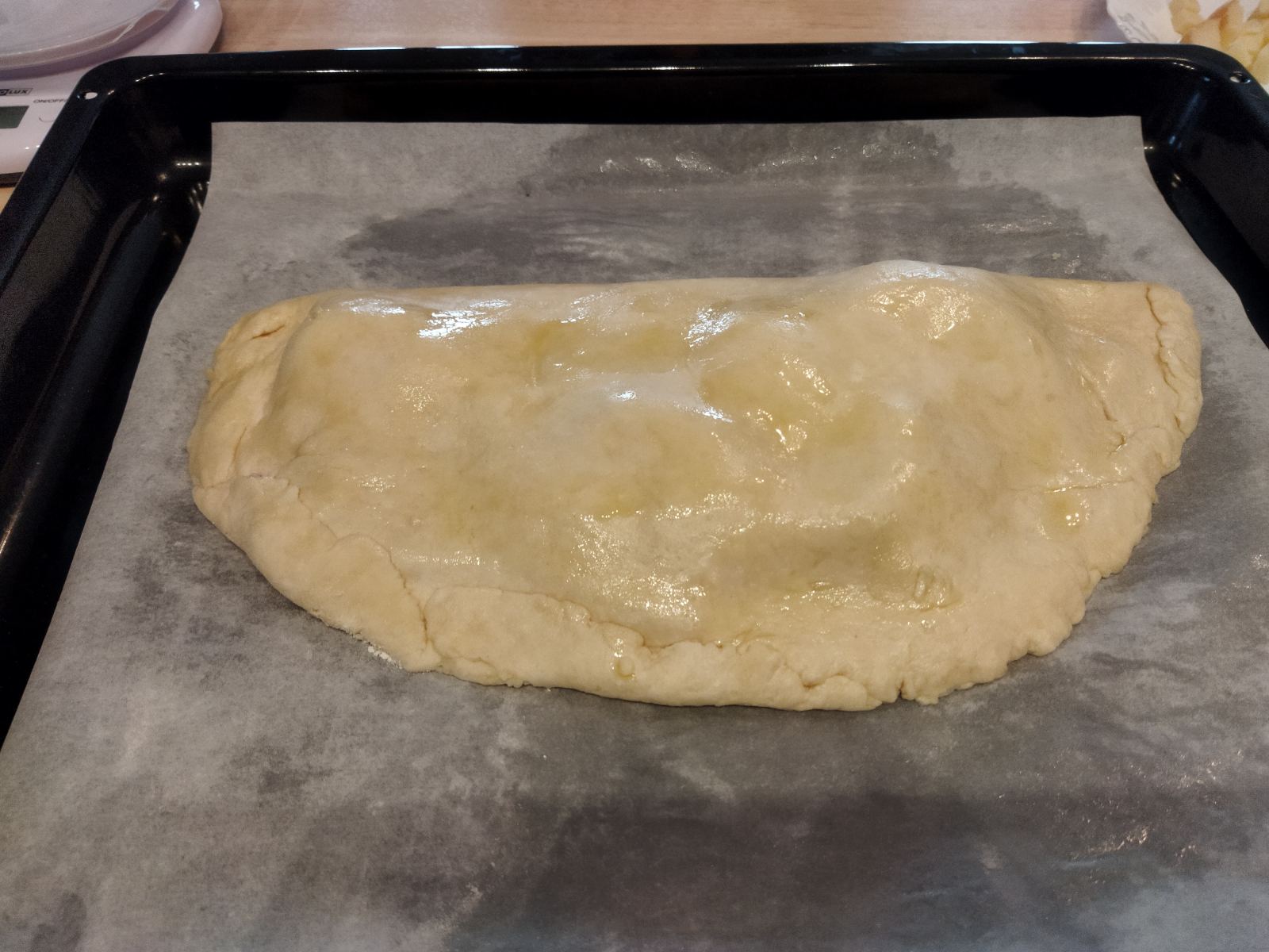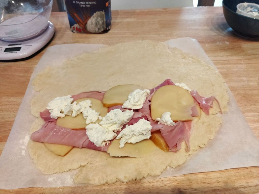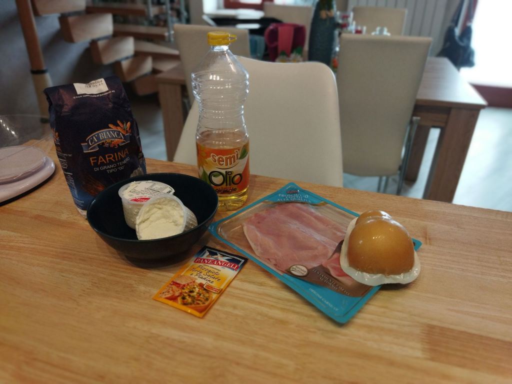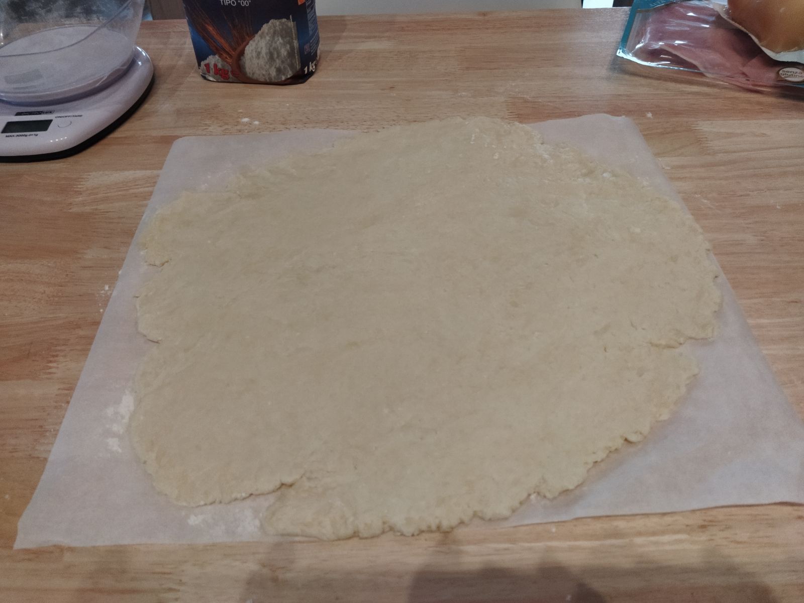 Nel cestello dell’impastatrice versate 220 gr di acqua leggermente tiepida e sciogliete 8 gr di lievito di birra fresco. Quindi aggiungete 30 gr di olio, io ho usato quello di semi, e 400 gr di farina 0, io ho usato quella manitoba e 5 gr di sale, ed impastate, a mano o con impastatrice fino l’impasto non apparirà liscio e morbido, ossia non oppone resistenza quando lo stendete con le mani.