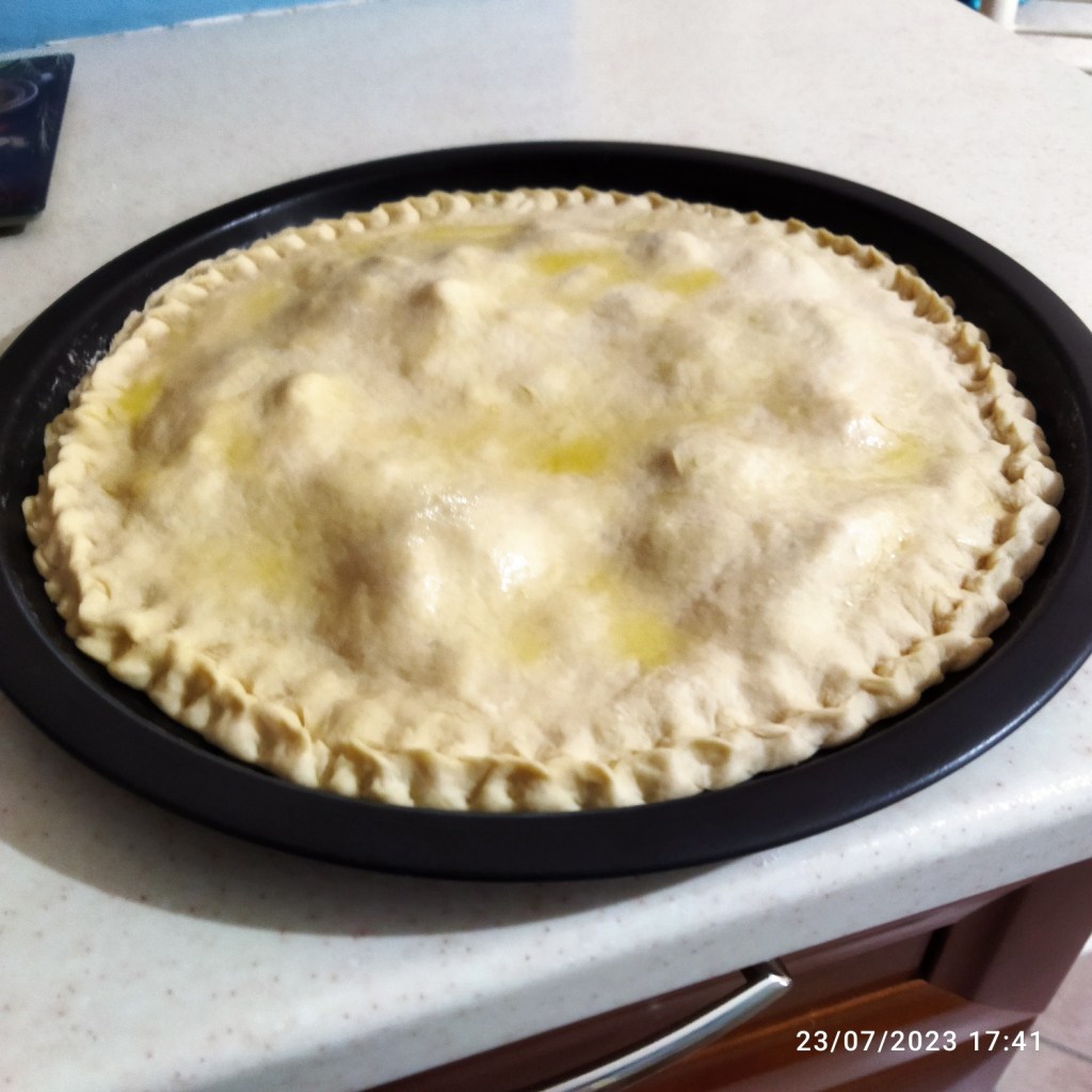 Fate lievitare fino al raddoppio quindi preparate una teglia per pizza di circa 33 cm di diametro ungendola con olio.