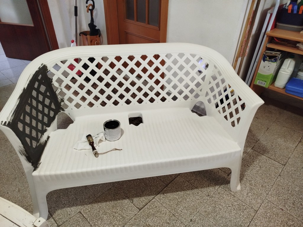 E così mi sono messa subito all’opera : non ho aspettato neanche che Clodino facesse la foto alla panca nella sua versione iniziale