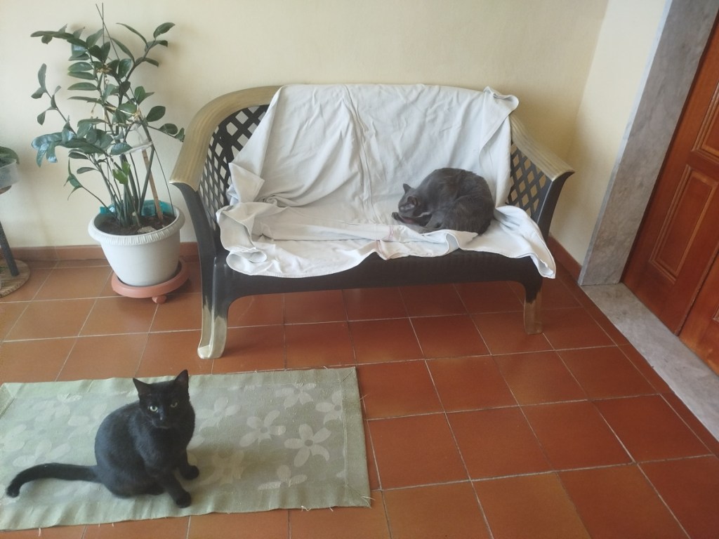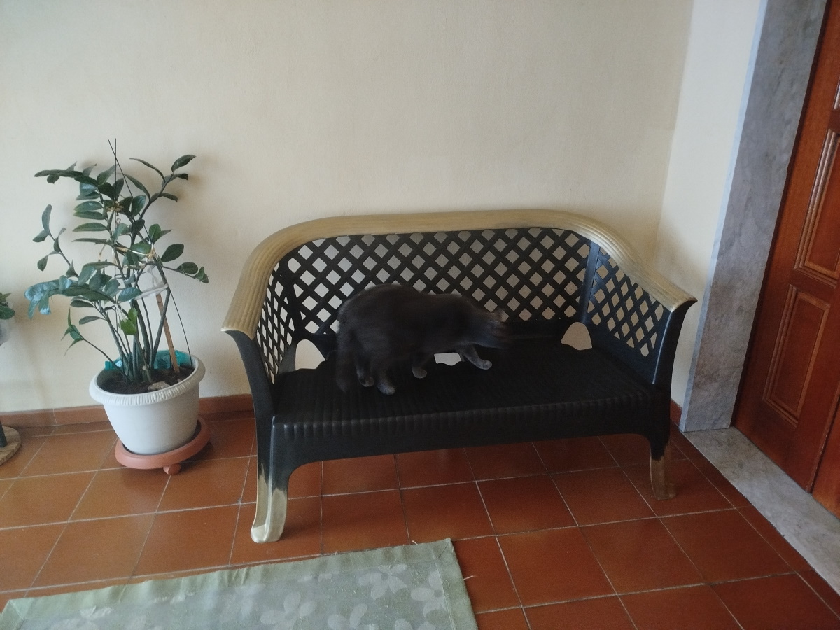 Stare sdraiata sulla panchina con una copertina, perchè nn vorrei mai rovinarla, sennò Sophie me la fa ri-pitturare. Sooolo IO posso sdraiarmici sopra… anche se Puntino non sembra d’accordo !!!!