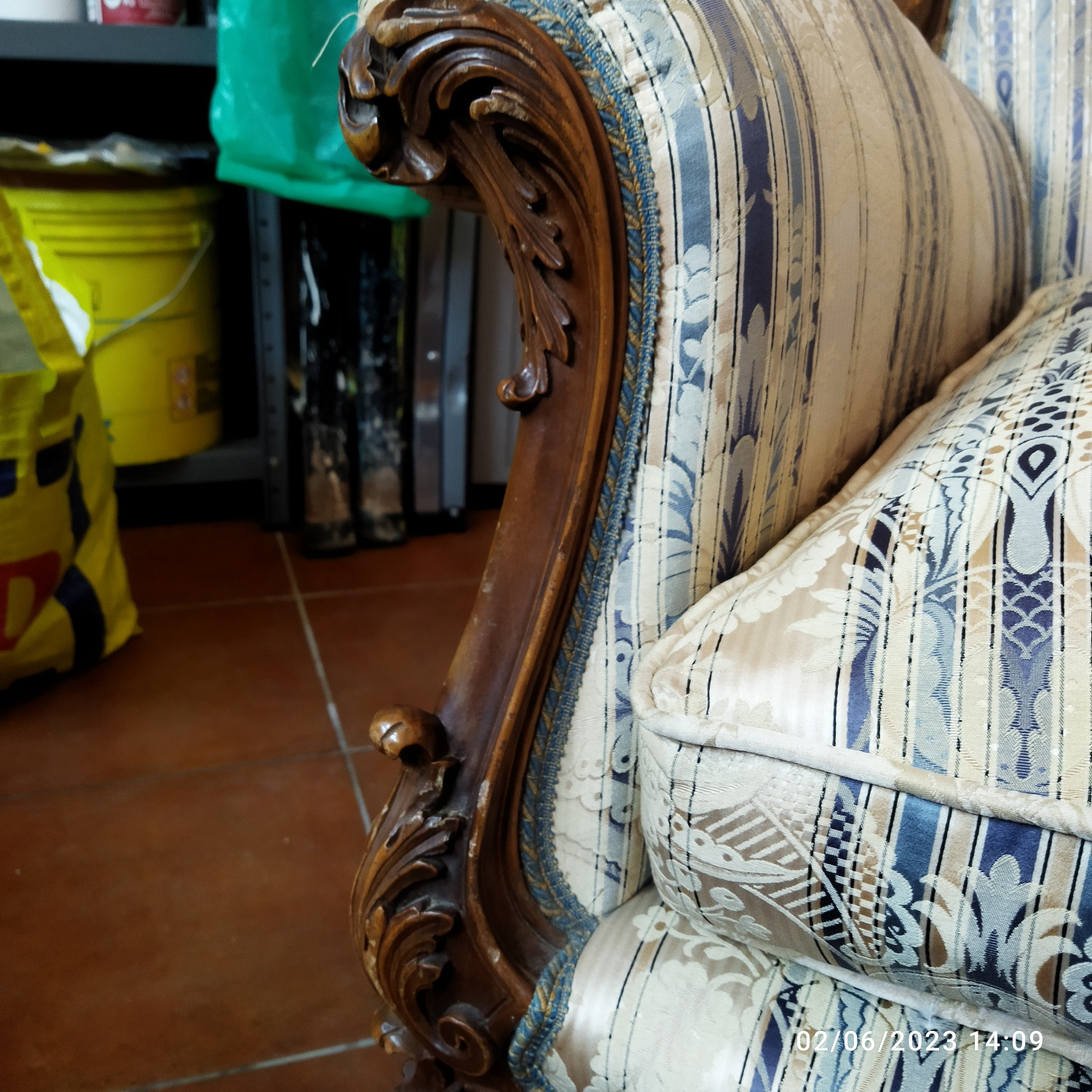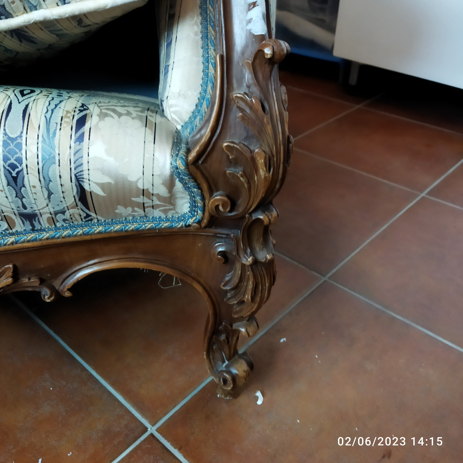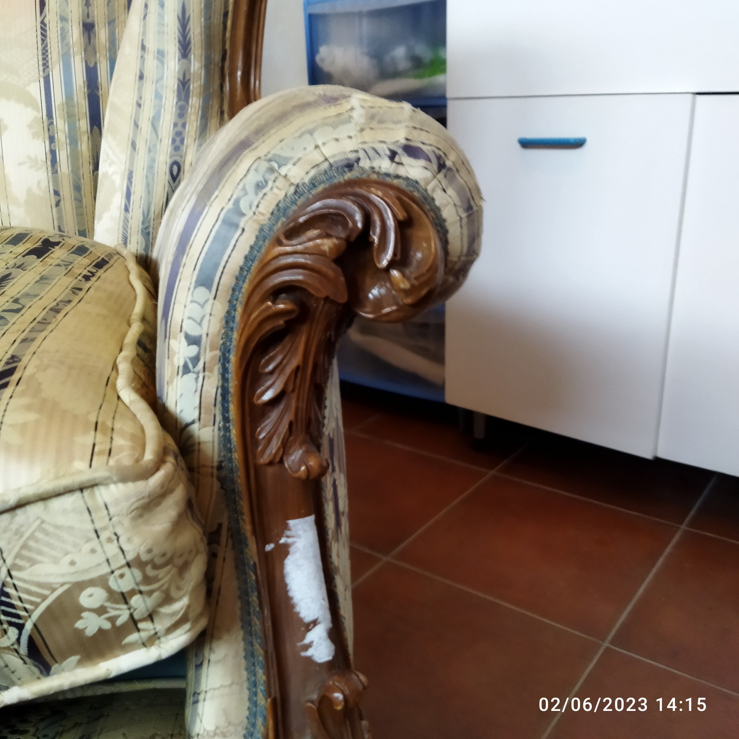 Nel frattempo la Sophie sta decidendo come chiudere i buchi lasciati dai tarli, ricostruire le parti in legno rotte e/o danneggiate dai tarli, sistemare le cinghie della seduta, come risolvere il problema della spugna nei braccioli, come pulire l’imbottitura con disinfettante e acaricida, e poi per ultimo scegliere il rivestimento ed i colori. Insomma : c’è ancora tanto lavoro da fare, ma ci riusciremo !!! E io darò tutto il mio sostegno morale alle Sophie, perchè non vedo l’ora di fare il controllo qualità sulla poltrona !!!