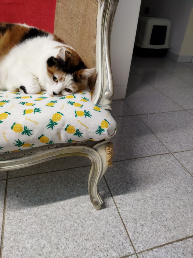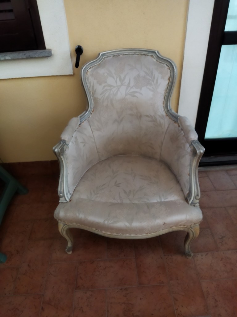 Salve a-mici !!! Mentre io sgobbo per ridare dignità e bellezza alla poltroncina, Milù e Isotta litigano per chi deve sistemarsi in gatta stabile sulla poltrona …. e mentre loro litigano io lavoro…..