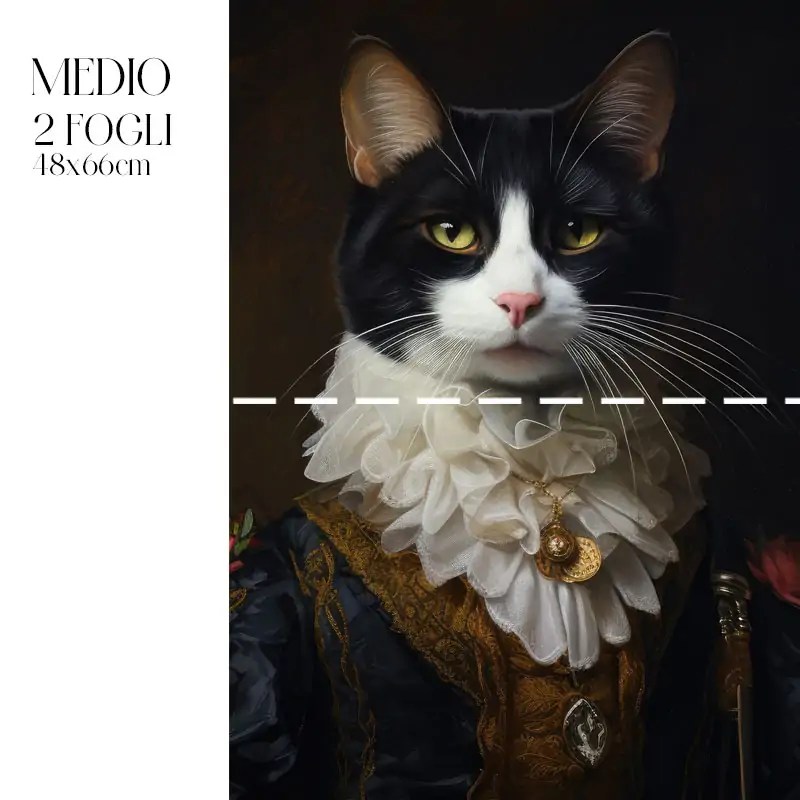 Salve a-mici !!! La Sophie ultimamente è molto impegnata : il laboratorio di artigianato, il corso all’Università , la gestione della Tana, e così, (per fortuna!!!), ha abbandonato la sua chalk paint e i mobili da restaurare …. Francamente non se ne poteva più … tutti i fine settimana la Tana era sottosopra e tutti, ma proprio tutti, dovevamo aiutarla. L’unico non contento di questa situazione è Puntino... lui ci aveva costruito sopra un bel giro di affari che gli permetteva di compensare l’annata non proprio eccelsa dei raccolti di erba gatta (… e non solo…). Questa situazione lo sta stressando al punto tale che sta perdendo abbondantemente il pelo…… Così Brikka, che contava sulle entrate extra di Puntino per giocare alla Bisca, ha trovato una cliente… una vecchia signora che ha una soffitta piena di oggetti antichi che le piacerebbe restaurare. La Sophie è andata in brodo di crocchette quando Puntino l’ha portata in questa soffitta… e subito si è messa all’opera : alla Tana in questi giorni è stato un continuo arrivo di pacchi. Io e Milù ci siamo subito preoccupate : non abbiamo voglia di passare il fine settimana tra pennelli e pitture….. a noi piace pisolare al calduccio, mangiare crocchette, picchiare Puntino, fare arrabbiare Yuyu, …… così ho dovuto sbirciare in alcuni pacchi. Non ho trovato pitture, ma ho trovato un foglio con sopra stampato un ritratto di Baffo vestito da duca o da conte o da barone, e poi delle scritte trasferibili …… Non abbiamo idea di cosa debba combinare la Sophie, ma in ogni caso è opportuno defilarsi prima che i grandi lavori comincino….