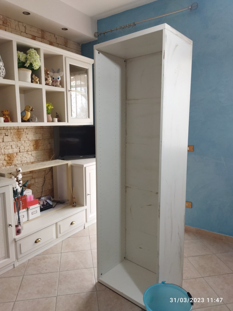 La versione originale del mobiletto, prevedeva delle lastrature, molto sottili, con stampa di radica. Tinteggiandolo avrei coperto questo effetto, quindi ho dovuto studiare un decoro alternativo per renderlo originale dopo averlo colorato. E mi sono venuti in aiuto i fregi in pasta di legno. Dopo averli scaldati con un Phon quanto basta per ammorbidirli, li ho incollati con la colla per legno. Carini vero ???? A questo punto ho tinteggiato il mobile con la chalk paint dello stesso colore della mia poltrona Luigi XV