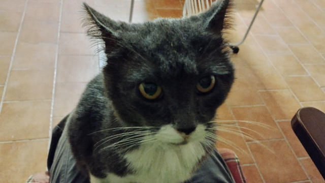 Il veterinario sostiene che non ha più di tre mesi di vita : noi lo guardiamo, lo coccoliamo e lo curiamo per far si che il suo fegato funzioni. Non sappiamo quanto avanzata è la malattia, ma speriamo che Baffo smentisca nuovamente il veterinario e che il nostro amore lo salvi, così che Baffo abbia consumato una delle sue nove vite e possa trascorre tutte le altre con noi alla Tana.